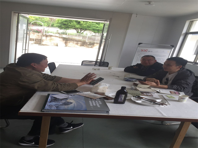 2021.4.13著名書法家劉老師、徽墨大師來公司參觀學(xué)習(xí),了解楮皮紙技藝,如何做出好楮皮紙,挑選好紙。